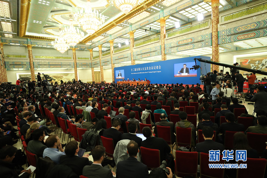 3月15日上午,國務院總理李克強在人民大會堂三樓金色大廳會見采訪十二屆全國人大五次會議的中外記者并回答記者提出的問題。圖為記者會現(xiàn)場。新華網(wǎng)/中國政府網(wǎng) 翟子赫 攝