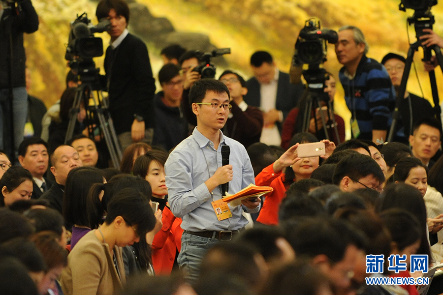 3月15日上午,國(guó)務(wù)院總理李克強(qiáng)在人民大會(huì)堂三樓金色大廳會(huì)見采訪十二屆全國(guó)人大五次會(huì)議的中外記者并回答記者提出的問題。圖為深圳特區(qū)報(bào)記者提問。新華網(wǎng)/中國(guó)政府網(wǎng) 翟子赫 攝
