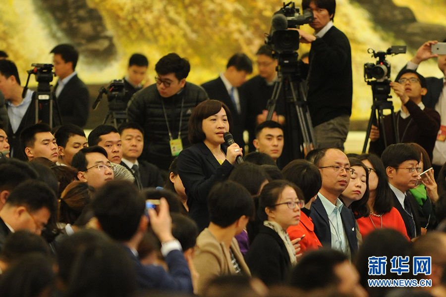 3月15日上午,國務(wù)院總理李克強(qiáng)在人民大會堂三樓金色大廳會見采訪十二屆全國人大五次會議的中外記者并回答記者提出的問題。圖為臺灣聯(lián)合報記者提問。新華網(wǎng)/中國政府網(wǎng)?孫韜 攝?