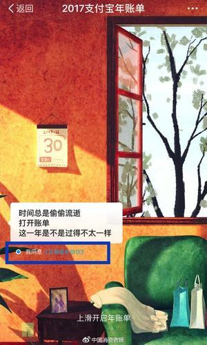 但到了昨天下午,法律界人士對賬單首頁的一行小字提出質(zhì)疑,認(rèn)為支付寶在用戶不知情狀態(tài)下獲取信息,涉嫌違反相關(guān)法律。