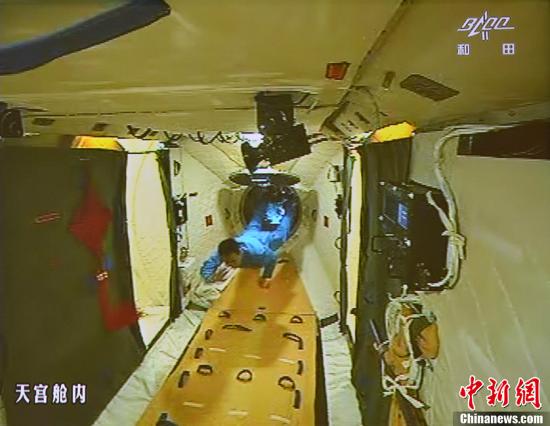 圖為在張曉光的協(xié)助下,聶海勝順利開啟并進(jìn)入天宮一號(hào)艙門(資料圖)。中新社發(fā) 秦憲安 攝