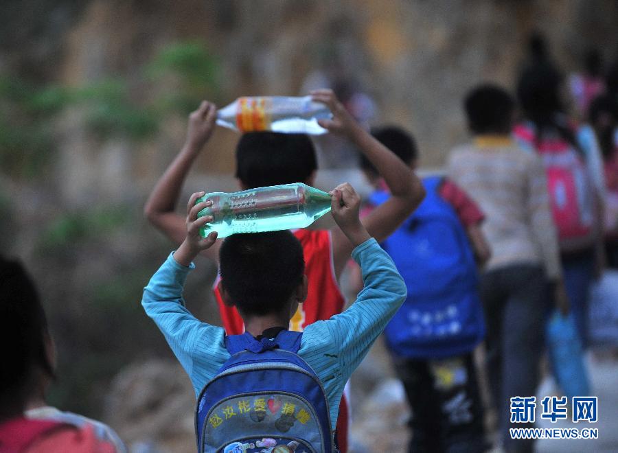 學(xué)校附近沒水源,喝水自帶。