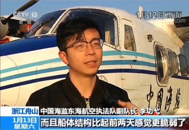 中國(guó)海監(jiān)東海航空?qǐng)?zhí)法隊(duì)副隊(duì)長(zhǎng) 李功弋:通過(guò)這幾天的航空觀察,感覺(jué)這艘船火勢(shì)沒(méi)有很明顯的變化,船體結(jié)構(gòu)越來(lái)越脆弱了,碰撞的缺口越來(lái)越大了,可能是11日的爆炸所致。