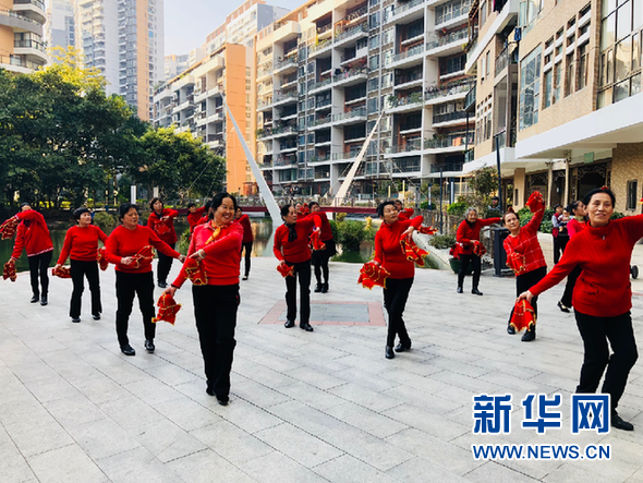 新華網(wǎng)深圳1月15日電(卓越)深圳的冬天沒有冰天雪地,位于寶安區(qū)的海裕社區(qū)新岸線小區(qū)草木蔥蘢,涼風習習。小區(qū)廣場上,十幾位居民穿著耀眼的“中國紅”舞衣,隨著音樂歡快起舞;樹蔭下,大爺大媽們揮灑太極,行云流水。