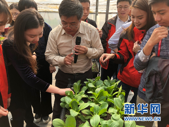 蔡海璋博士請記者們現(xiàn)場品嘗“零污染”青菜。新華網(wǎng) 卓越 攝