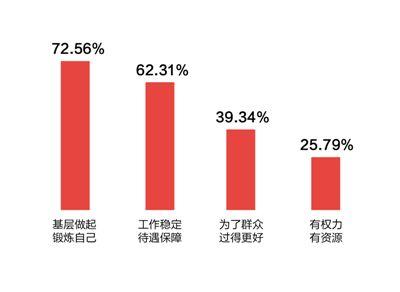 樣本情況:全國31個(gè)省區(qū)市的605名基層干部、4284名群眾參與了調(diào)查。受訪的基層干部中,從事基層工作不足5年的占27.77%、5到10年的42.64%、11到20年的20.83%、20年以上的8.76%。