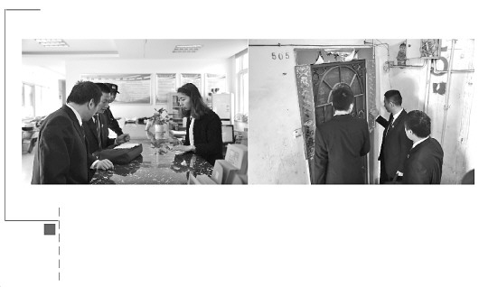 圖① 廬陽法院法官到社區(qū)調查執(zhí)行線索。圖② 廬陽法院法官上門查找被執(zhí)行人。