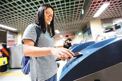 隨著中國(guó)在移動(dòng)互聯(lián)網(wǎng)領(lǐng)域的技術(shù)進(jìn)步與應(yīng)用普及,基于手機(jī)的支付方式正在走進(jìn)生活的每個(gè)角落。圖為一位北京市民通過(guò)刷手機(jī)直接進(jìn)站乘坐地鐵。 (網(wǎng)絡(luò)圖片)