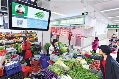 安徽省合肥市瑤海區(qū)勝利智能農(nóng)貿(mào)市場(chǎng),每個(gè)攤位都安裝了電子屏,只需掃碼即可實(shí)現(xiàn)移動(dòng)支付,還可在平臺(tái)對(duì)商家進(jìn)行點(diǎn)評(píng)、維權(quán)投訴等。掃碼“滴”聲之后,現(xiàn)實(shí)與虛擬被連接,這種黑白方格組成的“時(shí)代符號(hào)”(二維碼)帶來(lái)了便利、快捷和驚喜?!埓髰彅z(新華社發(fā))