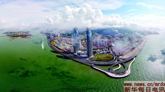 這是廈門演武大橋沿線及鼓浪嶼(拼接照片)。新華社記者姜克紅攝