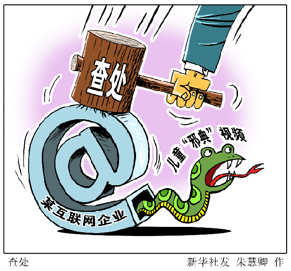 按照全國“掃黃打非”工作小組辦公室的部署要求,近期,廣東、北京兩地“掃黃打非”部門深入查辦涉兒童邪典視頻案件。優(yōu)酷、愛奇藝等一批為兒童“邪典”視頻提供傳播平臺的互聯(lián)網(wǎng)企業(yè)被依法查處。新華社發(fā) 朱慧卿 作