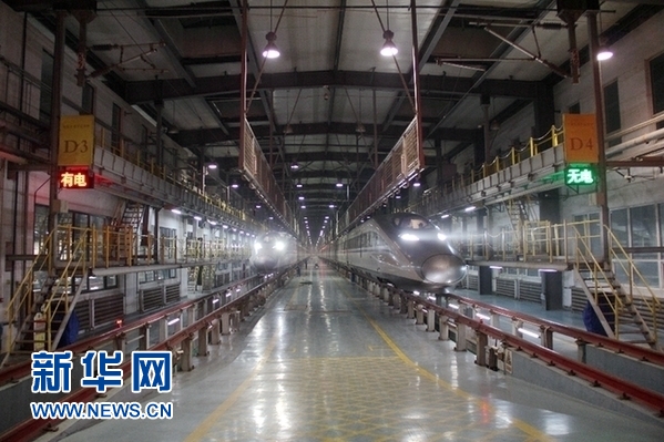 凌晨時分,石家莊動車運用所內依舊燈火通明。新華網(wǎng) 金佳緒 攝