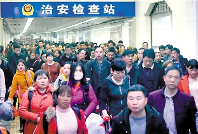 昨日,廣州火車(chē)站旅客出口通道客流。廣州日?qǐng)?bào)全媒體記者廖雪明 攝