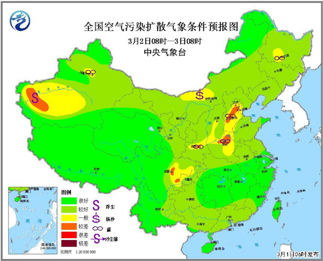 3月1日至7日,南方地區(qū)還將持續(xù)多陰雨天氣,強(qiáng)度多以小到中雨為主,其中3日至4日,江南、華南北部部分地區(qū)有大雨、局地有暴雨,并可能伴有強(qiáng)對流天氣。南方陰雨間歇期,還可能出現(xiàn)大霧天氣,這些地區(qū)的公眾出行時一方面要注意道路濕滑造成的不便,另一方面還要防范低能見度的影響。