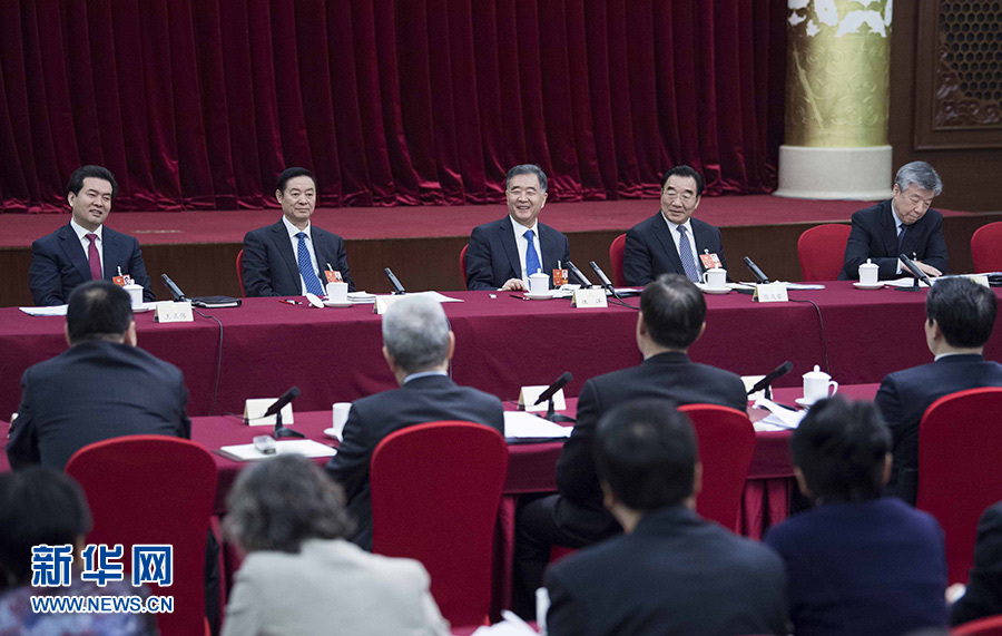 3月4日,中共中央政治局常委、全國(guó)政協(xié)十三屆一次會(huì)議主席團(tuán)會(huì)議主持人汪洋看望出席全國(guó)政協(xié)十三屆一次會(huì)議的中共界委員并參加討論。新華社記者 李濤 攝