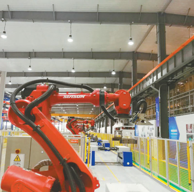 沈陽(yáng)新松公司智慧工廠機(jī)器人全自動(dòng)生產(chǎn)車間。王曉輝攝