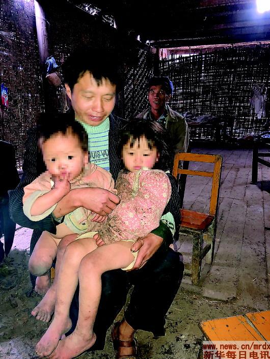 他看起來并不悲觀,他將2歲的兒子和6歲的女兒抱在懷中,孩子光著的腿已凍得通紅。冬日寒風(fēng)凜冽,我們擔(dān)心孩子會凍著,他卻擺著手說:不冷、不冷。