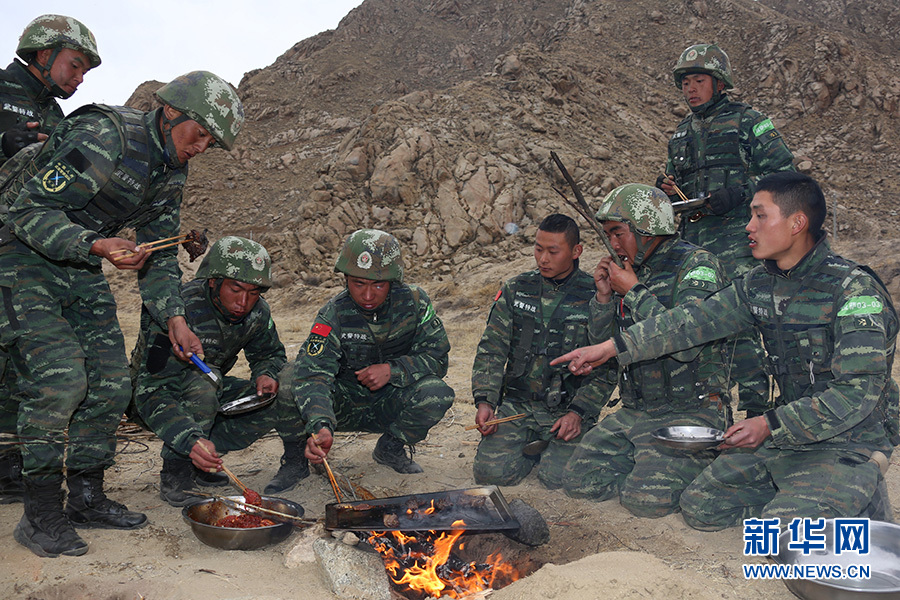 這是特戰(zhàn)隊(duì)員正在進(jìn)行小組野炊。新華網(wǎng)發(fā) 余文彬 攝