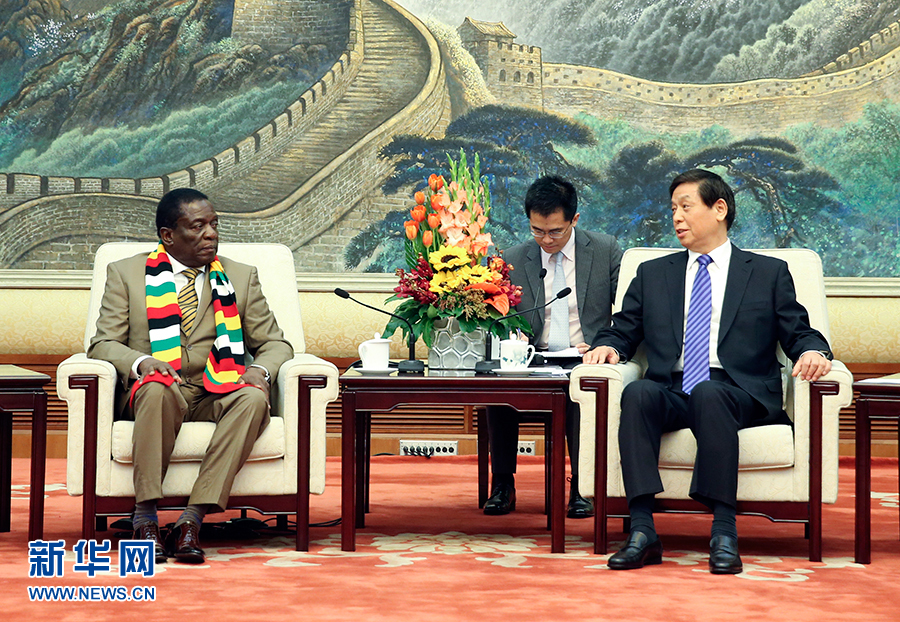 栗戰(zhàn)書表示,中津是風(fēng)雨同舟的真朋友、合作共贏的好伙伴、越走越近的好兄弟。昨天習(xí)近平主席同總統(tǒng)先生舉行了富有成果的會(huì)談,共同宣布建立中津全面戰(zhàn)略合作伙伴關(guān)系,為新時(shí)期兩國(guó)關(guān)系發(fā)展指明了方向。中國(guó)全國(guó)人大愿同津巴布韋議會(huì)一道,全面落實(shí)兩國(guó)元首重要共識(shí),以中非合作論壇北京峰會(huì)和“一帶一路”建設(shè)為契機(jī),充分發(fā)揮自身職能作用,加強(qiáng)立法交流,為雙方企業(yè)合作和人員往來(lái)提供良好的法律保障和便捷的政策服務(wù),不斷推動(dòng)中津友好合作邁上新臺(tái)階。