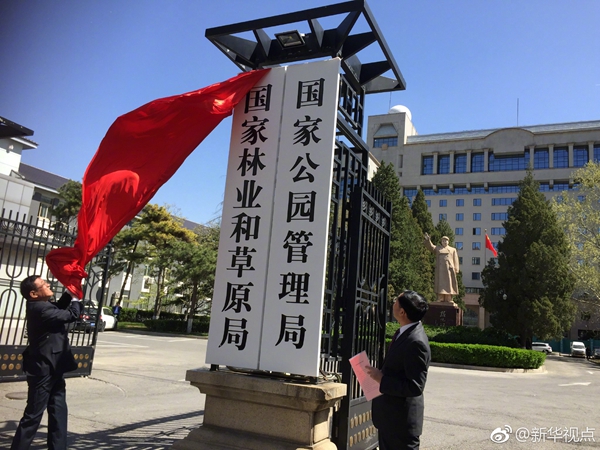 新華網(wǎng)北京4月10日電? 國家林業(yè)和草原局、國家公園管理局10日正式揭牌,由自然資源部管理,這對統(tǒng)籌山水林田湖草系統(tǒng)治理具有重要意義。(記者 侯雪靜 胡璐) ????(據(jù)新華社“新華視點(diǎn)”微博)