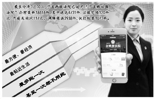 這樣的場(chǎng)景,在寧波兩級(jí)法院已經(jīng)不是個(gè)例。據(jù)統(tǒng)計(jì),截至今年3月30日,寧波兩級(jí)法院已運(yùn)用“寧波移動(dòng)微法院”辦理案件18616件,其中送達(dá)4731件,證據(jù)交換120件次,開庭或詢問117次;調(diào)解撤訴2938件,執(zhí)行結(jié)案1073件。