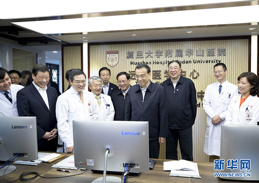 李克強(qiáng)來(lái)到華山醫(yī)院,通過(guò)互聯(lián)網(wǎng)遠(yuǎn)程會(huì)診系統(tǒng)與青海果洛、云南騰沖、新疆喀什的醫(yī)務(wù)人員對(duì)話,詢問(wèn)還有什么困難。他說(shuō),中西部地區(qū)尤其是農(nóng)村貧困地區(qū)優(yōu)質(zhì)醫(yī)療資源缺乏,要按照以人民為中心的發(fā)展思想的要求,在繼續(xù)改善中西部地區(qū)中心醫(yī)院檢測(cè)設(shè)施的同時(shí),積極發(fā)展“互聯(lián)網(wǎng)+醫(yī)療”,電信部門(mén)要為此通專線、提網(wǎng)速,醫(yī)衛(wèi)部門(mén)要更大發(fā)掘優(yōu)質(zhì)醫(yī)療資源的潛能,讓好醫(yī)生在中西部基層也能“觸屏可及”。李克強(qiáng)還來(lái)到徐匯區(qū)江南新村,對(duì)這里實(shí)行社區(qū)醫(yī)養(yǎng)結(jié)合,幫助老人們居家養(yǎng)老表示贊許。