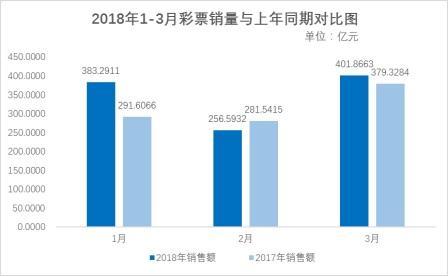 1月至3月累計,福利彩票機構銷售522.49億元,同比增加9.11億元,增長1.8%;體育彩票機構銷售519.26億元,同比增加80.17億元,增長18.3%。