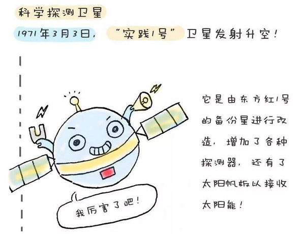 實(shí)踐一號(hào)衛(wèi)星是中國(guó)第一顆科學(xué)探測(cè)和技術(shù)實(shí)驗(yàn)衛(wèi)星,于1971年3月3日發(fā)射,重221公斤,外形為近似球體的多面體,直徑1米。它的主要任務(wù)是試驗(yàn)星上太陽能電池供電系統(tǒng),主動(dòng)無源溫度控制系統(tǒng),長(zhǎng)壽命遙測(cè)設(shè)備及無線電線路性能及其他太空環(huán)境探測(cè)。實(shí)踐一號(hào)的設(shè)計(jì)壽命為一年,實(shí)際在太空中工作了8年之久,直到1979年6月17日才返回大氣層燒毀。