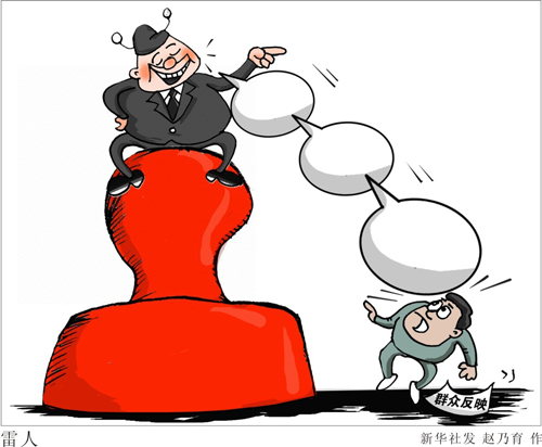 在頻頻曝光的群眾合法權(quán)益被侵害事件中,活躍著這樣一批基層干部說客:他們在接到有關(guān)違法違規(guī)行為的舉報后,不認真全面展開調(diào)查,反而巧言令色替違法亂紀者“站臺”、捂蓋子。各路干部說客們或明說,或暗示,以偷換概念、威逼利誘、拖延處理等方式,“游說”被侵權(quán)人妥協(xié)或者放棄維權(quán),為基層百姓深惡痛絕。
