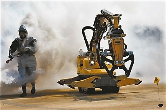 他是在真毒真防演練中,利用機(jī)器人等高科技裝備對突發(fā)事故進(jìn)行應(yīng)急處置的火箭軍防化兵