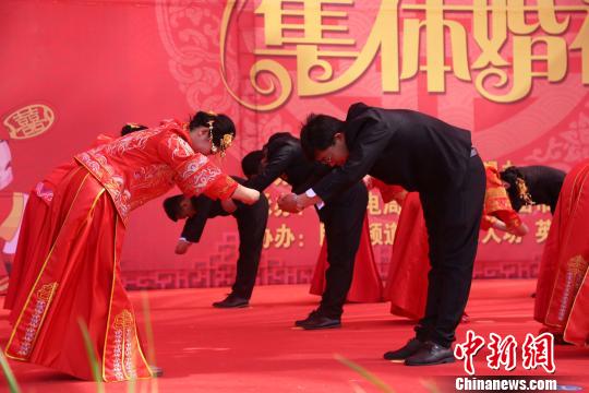 18對新人以“零彩禮”集體婚禮的形式步入幸福的婚姻殿堂,致敬青春?!√J柯柯 攝