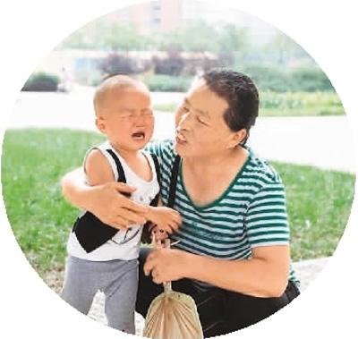 北京某社區(qū)內一位隨遷老人正在安慰兩歲多的孫子,孩子因為摔倒啼哭不止。(來源:央廣網)
