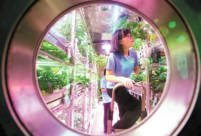 據(jù)了解,此次“月宮一號(hào)”的系統(tǒng)閉合度達(dá)到了98%,“如果一個(gè)人需要100公斤食物,有98公斤可以通過這個(gè)系統(tǒng)來滿足,那么閉合度就是98%。”劉紅介紹,除了帶一些肉食、佐料以及需要給植物補(bǔ)充的營(yíng)養(yǎng)液外,團(tuán)隊(duì)要完全依靠艙內(nèi)物資生活。
