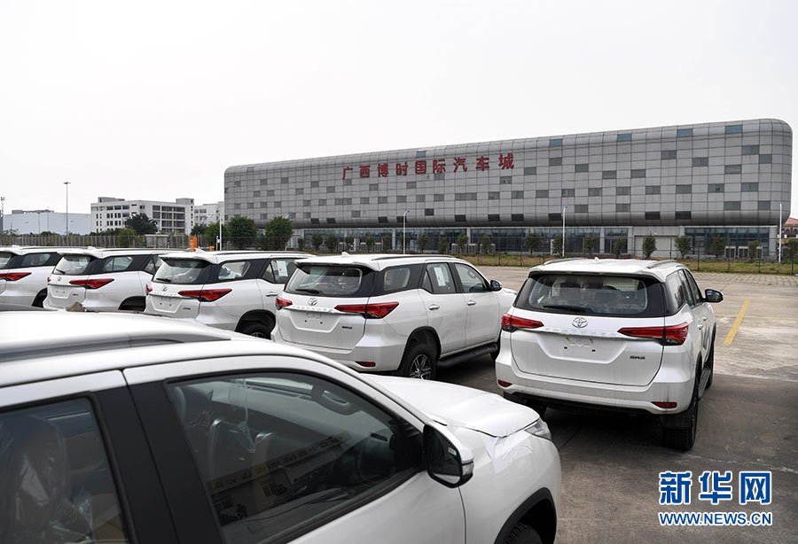 停放在廣西欽州保稅港區(qū)國際汽車城外的到岸進口整車(2017年4月13日攝)。新華社記者 申宏 攝