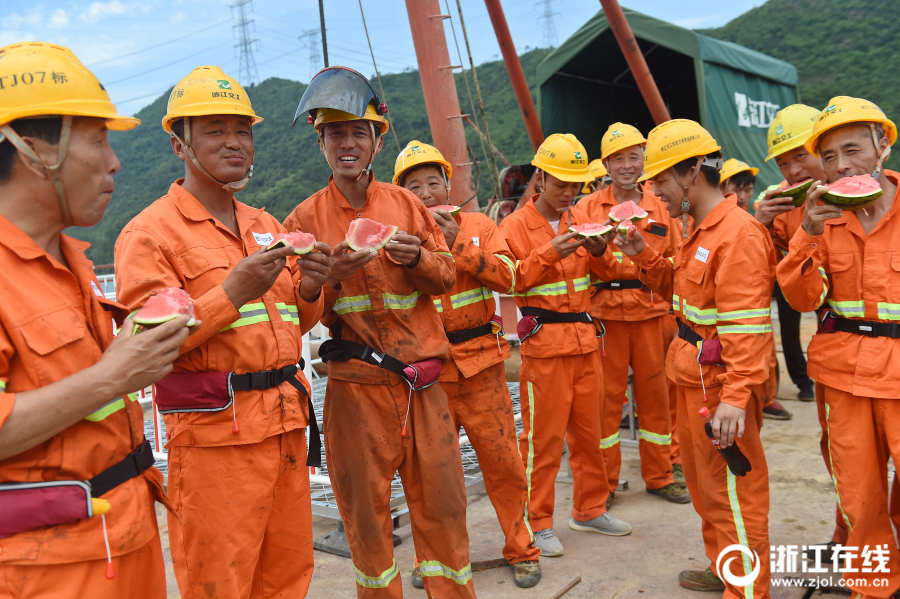 5月16日,杭州持續(xù)高溫,最高氣溫達(dá)37.5℃。在G25長(zhǎng)深高速德清至富陽(yáng)段擴(kuò)容工地,工人正在抓緊建設(shè)跨富春江大橋。承建施工項(xiàng)目的浙江交工宏途交通建設(shè)有限公司,為一線建設(shè)者送來(lái)了清涼用品和防暑藥品,慰問(wèn)高溫下作業(yè)的施工人員。(浙江在線記者 吳元峰 攝)