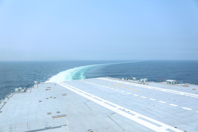 5月13日至18日,我國(guó)第二艘航母首次出海試驗(yàn)。新華社記者于曉泉 攝