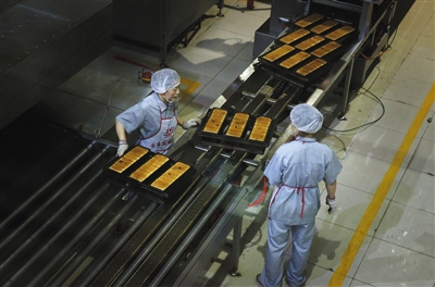門楣上,暗紅色的招牌上噴著鮮黃的大字——“百年義利”。這個(gè)隸屬于北京第一輕工食品集團(tuán)(簡(jiǎn)稱“一輕”)的百年老店是一家國(guó)有企業(yè),自1951年在北京建廠至今已生存67年。