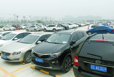 地鐵六號線潞城站外停車場內(nèi),外埠牌照汽車約占八成。白繼開 攝