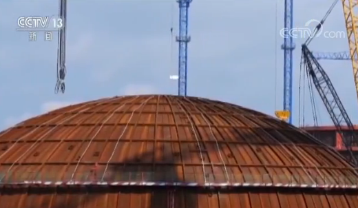 央視記者 李廈:我現(xiàn)在是在廣西防城港核電站華龍一號機組的施工現(xiàn)場,我身后這個龐然大物就是即將進行吊裝的華龍一號機組的穹頂,它的體積十分的巨大,直徑達到了45米,起吊重量超過了260噸,就是這么一個大家伙,它即將從這里起吊,將吊裝到在我們不遠處高度約45米的核島廠房的頂部,這也標志著華龍一號英國示范項目將進入到新的階段。