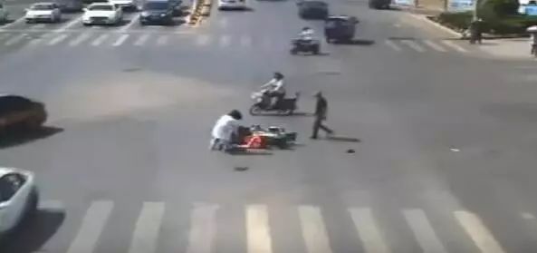 被摩托車(chē)壓倒在地?zé)o法起身