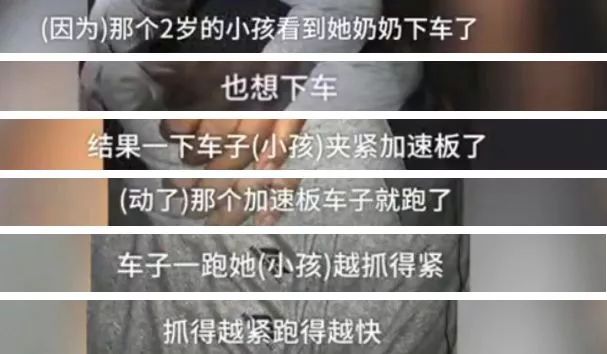 據(jù)救人老板描述,當(dāng)時(shí)在車(chē)上的小孩想下車(chē),動(dòng)了加速板,車(chē)就跑了,結(jié)果孩子抓的越緊,車(chē)跑的越快...眼看就要來(lái)不及了。