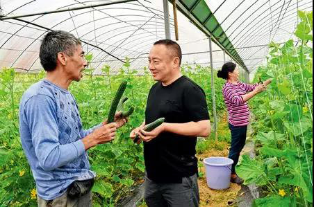 福建省武夷山市上梅鄉(xiāng)首陽(yáng)村黨支部書記、村主任左承基(中)在農(nóng)民創(chuàng)業(yè)園的大棚內(nèi)了解蔬菜種植情況 張國(guó)俊攝/本刊