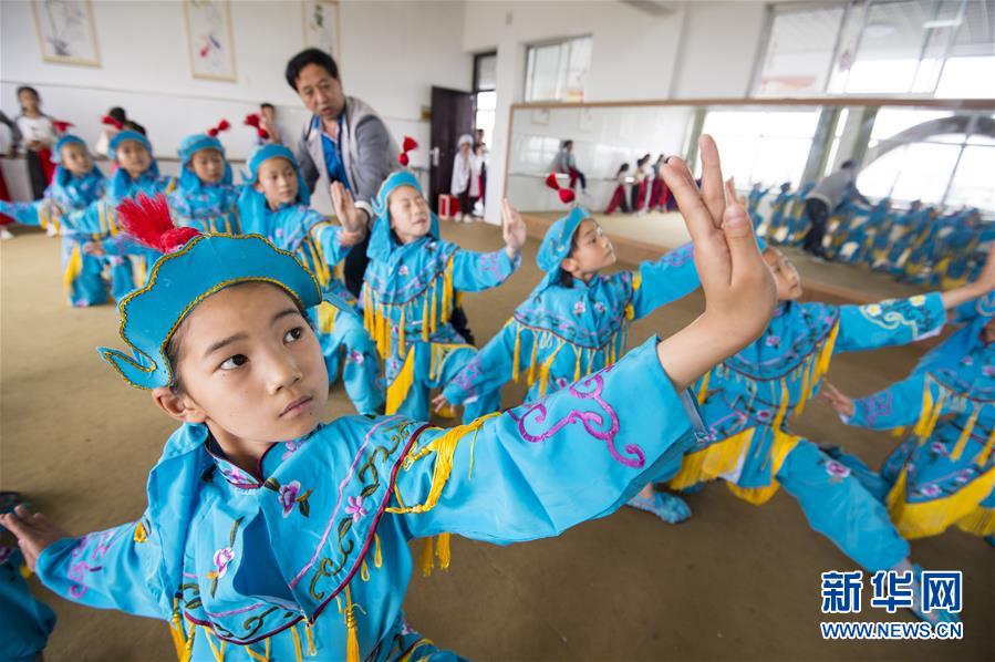 江蘇省南通市海安縣西場(chǎng)小學(xué)學(xué)生在練習(xí)京?。?月26日攝)。新華社發(fā)(徐勁柏 攝)