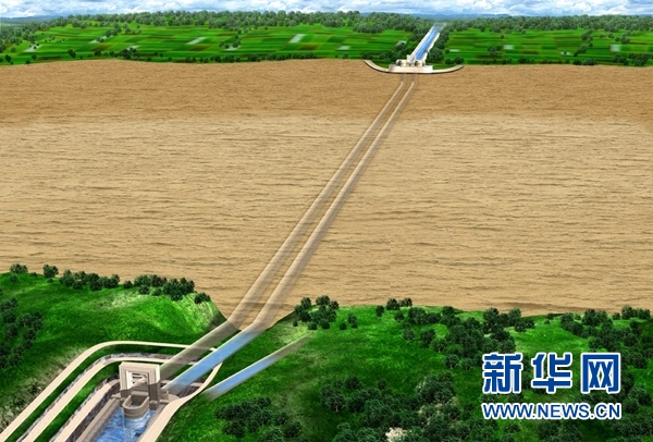 穿黃工程位于河南省鄭州市黃河上游約30千米處,是南水北調(diào)中線上標(biāo)志性、控制性工程。“穿黃”顧名思義就是“穿越黃河”,來自丹江口水庫的長江水自渠首出,一路自流向北,而黃河成為阻礙南水北去的天然屏障。為解決這一問題,在鄭州花園口西黃河河床底部40米深處,開鑿兩條4250米長的隧道,北上的長江水通過兩條穿黃隧洞與黃河立體交叉,形成“江水不犯河水”之勢(shì)俯沖而下,穿越萬古黃河。