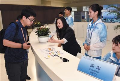 6月1日,志愿者正式上崗,為參會嘉賓、媒體等提供抵離、翻譯、媒體服務(wù)、城市運行等全方位、精細化的志愿服務(wù)。為了讓志愿服務(wù)更加周到貼心,青島還根據(jù)志愿者的個人專業(yè)、特長和意愿進行了分組。在新聞中心,就有300多名志愿者。