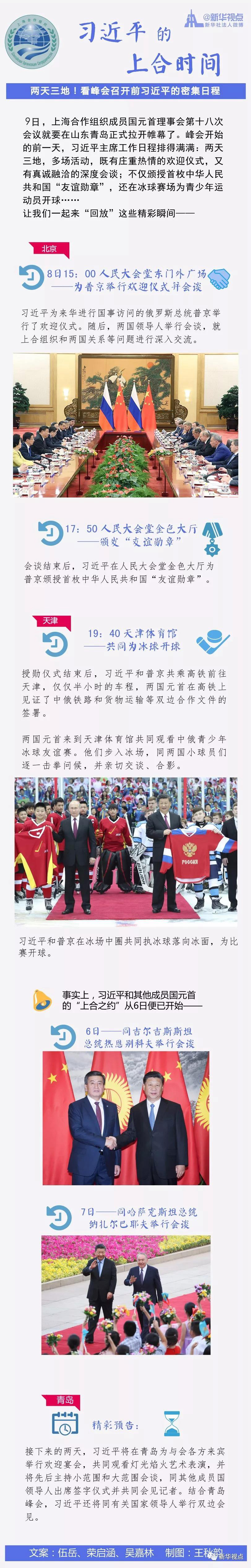 9日,上海合作組織成員國元首理事會第十八次會議就要在山東青島正式拉開帷幕了。峰會開始的前一天,習(xí)近平主席工作日程排得滿滿:兩天三地,多場活動,既有莊重?zé)崆榈臍g迎儀式,又有真誠融洽的深度會談;不僅頒授首枚中華人民共和國“友誼勛章”,還在冰球賽場為青少年運動員開球……讓我們一起來“回放”這些精彩瞬間????