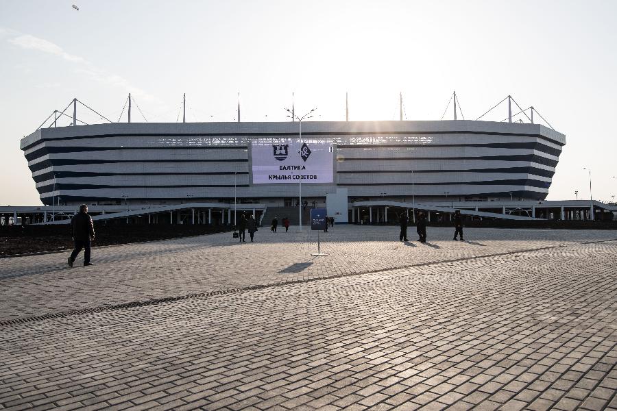 加里寧格勒體育場(chǎng)位于俄羅斯加里寧格勒市東南,是本屆世界杯新建場(chǎng)館。球場(chǎng)可容納3.5萬(wàn)名觀眾。俄羅斯世界杯期間,加里寧格勒體育場(chǎng)將舉辦四場(chǎng)小組賽。這是加里寧格勒體育場(chǎng)外景(4月11日攝)。 新華社記者吳壯攝