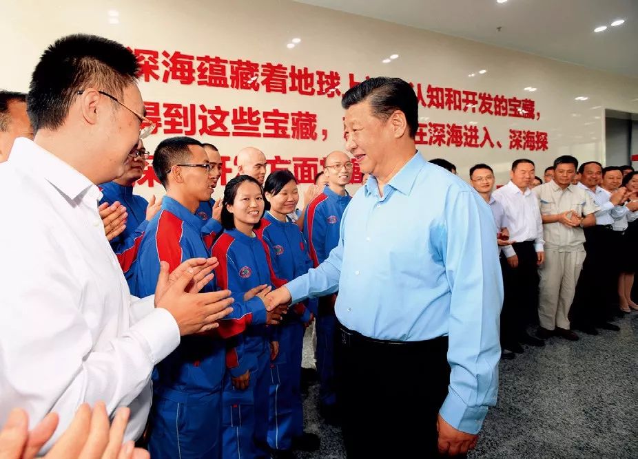 ▲ 4月12日,習(xí)近平總書記在位于三亞的中國(guó)科學(xué)院深??茖W(xué)與工程研究所,同“深海勇士”號(hào)載人潛水器設(shè)計(jì)師和深潛團(tuán)隊(duì)親切交談 李學(xué)仁攝