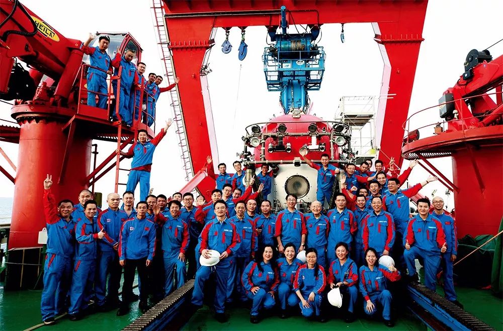 ▲ 5月23日,“南海深部計(jì)劃”西沙深潛航次的部分考察隊(duì)員在“深海勇士”號(hào)前合影 張建松攝