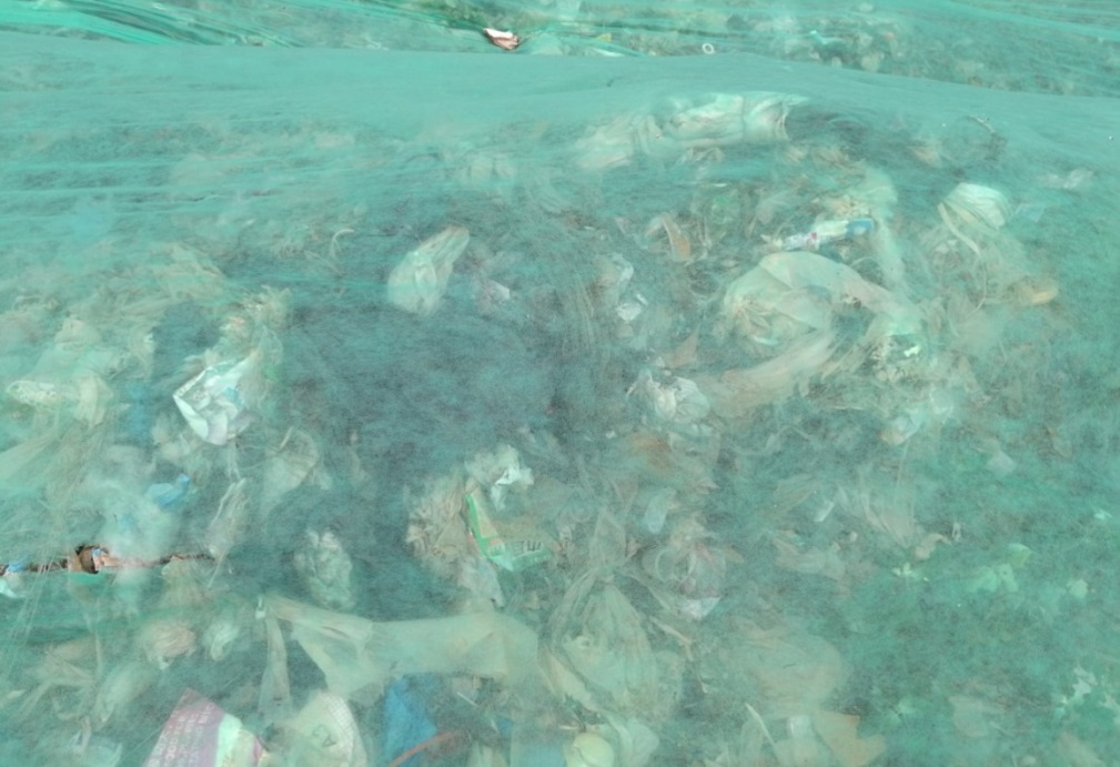 圖5:三善堂臨時(shí)垃圾堆場(chǎng)綠化膜下的垃圾清晰可見(jiàn)